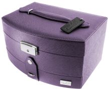 Klassisches Design und elegante Formen in Verbindung mit praktischen Funktionalitäten. Das sind die Vorzüge dieser einzigartigen Miabelle Schmuckschatulle. Sie bietet im oberen Fach zwei kleine Ablagemöglichkeiten für kostbare Armbänder oder Ohrstecker, die durch Schmetterlingsabdeckungen geschützt werden. Ihre Ringe platzieren Sie in den dafür vorgesehenen Steckfächern. Ein kleineres Fach mit Deckl bietet Platz für kleine Schmuckstücke. Die geräumige Schublade ist in zwei Fächer unterteilt und bietet genügend Platz für Halsketten, Colliers, Uhren und größere Armreifen. Der praktische Spiegel im Deckel erlaubt es Ihnen mit einem kurzen Blick, Ihr Make-up oder die Frisur zu überprüfen. Diese Miabelle Schatulle ist innen vollständig mit weichem Velours ausgekleidet und außen mit widerstandsfähigen Kunstleder in der Trendfarbe lila überzogen. Darüber hinaus besitzt sie ein sicheres Schloss, damit Ihre kostbarsten Schmuckstücke jederzeit sicher in der oberen Etage aufbewahrt werden.